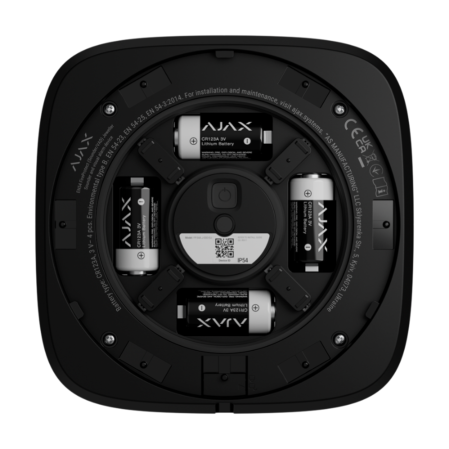 AJ-EN54-SOUNDER-B je bežična protupožarna sirena, certificirana prema europskim standardima EN 54-3 i EN 54-25. Omogućuje snažna zvučna upozorenja (do 100 dB), s izborom od 32 tona, i sigurnu komunikaciju s upravljačkom pločom putem Jeweller tehnologije.