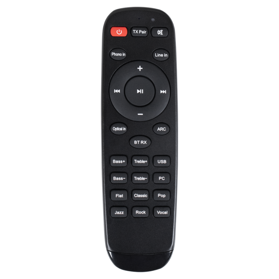 | Ports | Inputs:1 x RCA (LINE IN - Max. 2V RMS)1 x RCA (PHONO IN - Supports MM/MC1 x Optical IN (Up to 192kHz/24bits only PCM)1 x TV ARC (PCM only, does not support CEC)1 x USB (Supported formats Fat16, Fat32, |