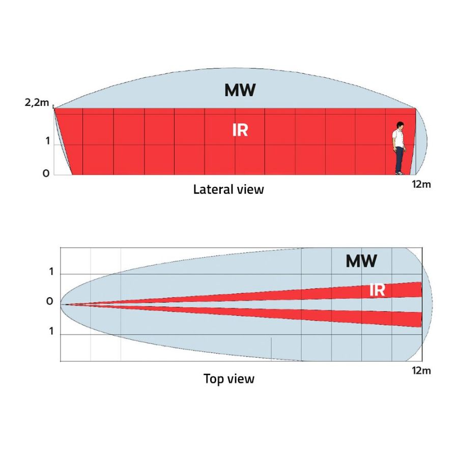| Raspon detekcije | Podesivo: 3 m do 12 m (ovisno o instalaciji) / PIR 7,5° / Mikrovalno 30° |