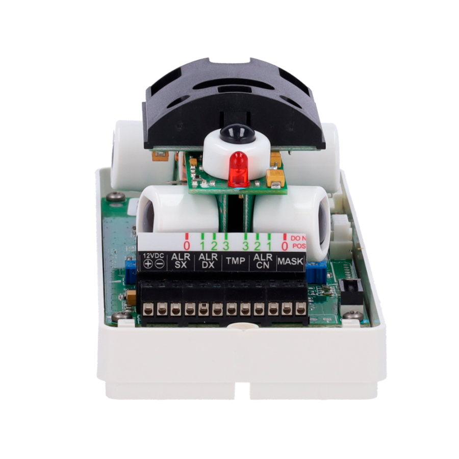 | DIP Switch configuration | 1 - Antimasking (On/Off)2- Front pre-alarm (On/Off)3- Front walk-test (On/Off)4- Walk-test right (On/Off)5- Walk-test left (On/Off)6- Alarm LED (On/Off) 7- Programming by App (On/Off)8 y 9 - Side conf |