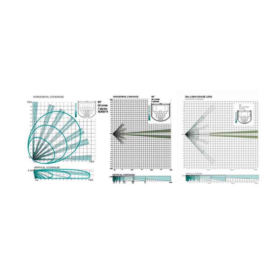 | PIR objektiv | 3 available lenses 1/2/3: 60/24/46 Zones & 7/6/6 planes |