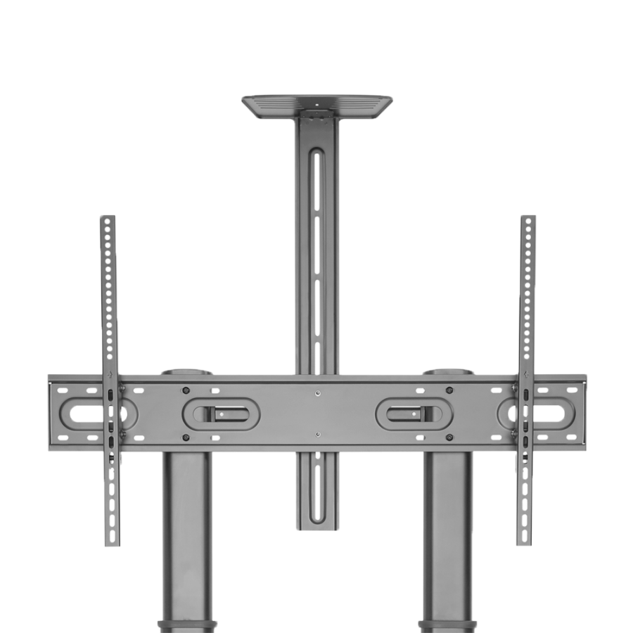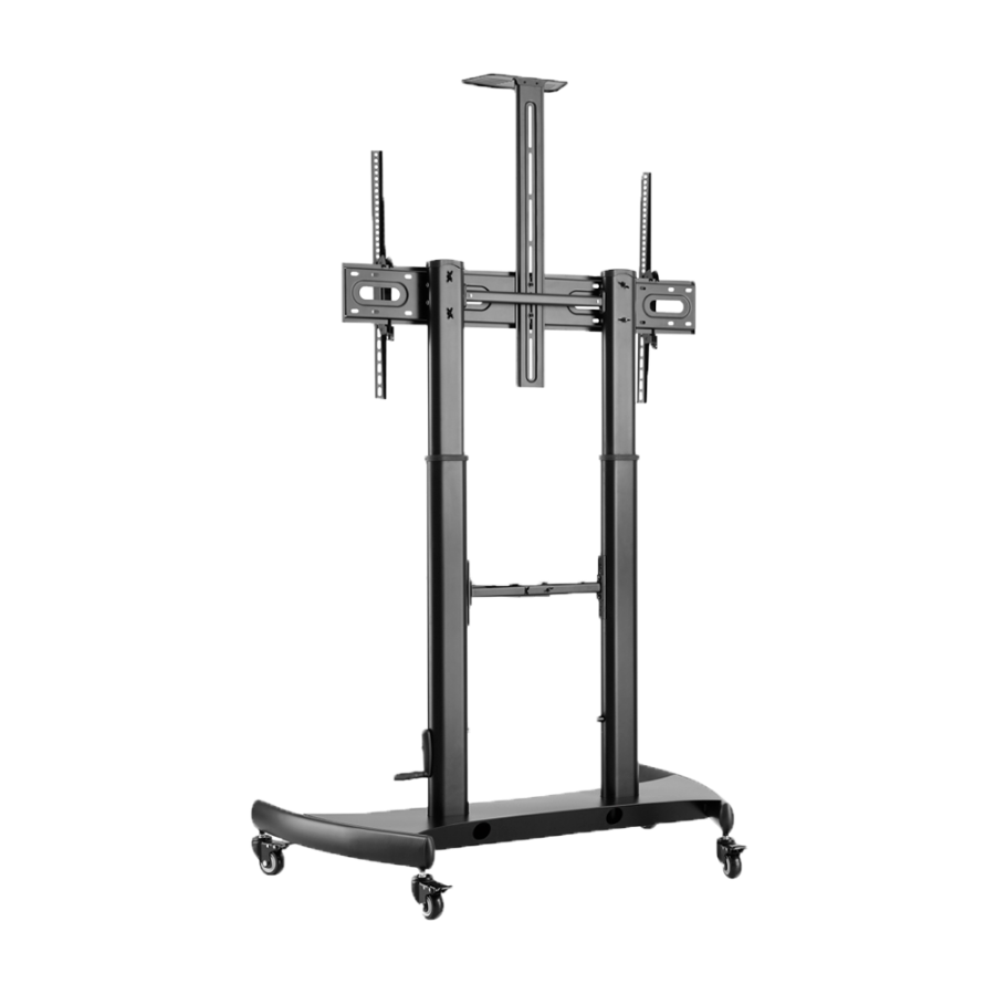 A floor stand with casters is a structure that holds a monitor on the floor and has built-in casters, allowing the equipment to be easily moved from one location to another. It is ideal for spaces that require flexibility and mobility, such as presentations or events.