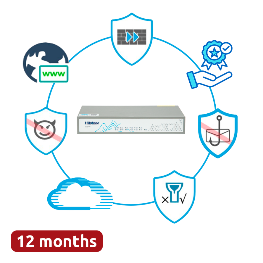 Hillstone SG-6000-A1000-HWBDL-IN12 je kompaktan i Snagaan vatrozid nove generacije (NGFW) dizajniran za pružanje napredne zaštite mrežama malih i srednjih poduzeća, kombinirajući proaktivno otkrivanje prijetnji, granularnu kontrolu aplikacija i automatizirane sigurnosne operacije.