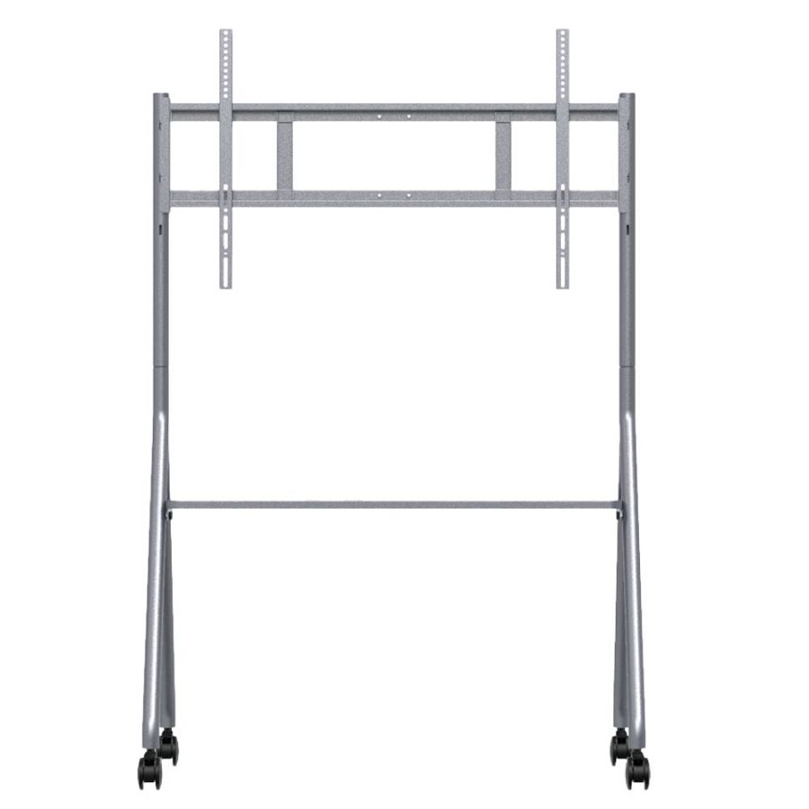 Podni stalak s kotačićima je konstrukcija koja drži monitor na podu i ima ugrađene kotačiće, što omogućuje jednostavno premještanje opreme s jedne lokacije na drugu. Idealan je za prostore koji zahtijevaju fleksibilnost i mobilnost, poput prezentacija ili događaja.