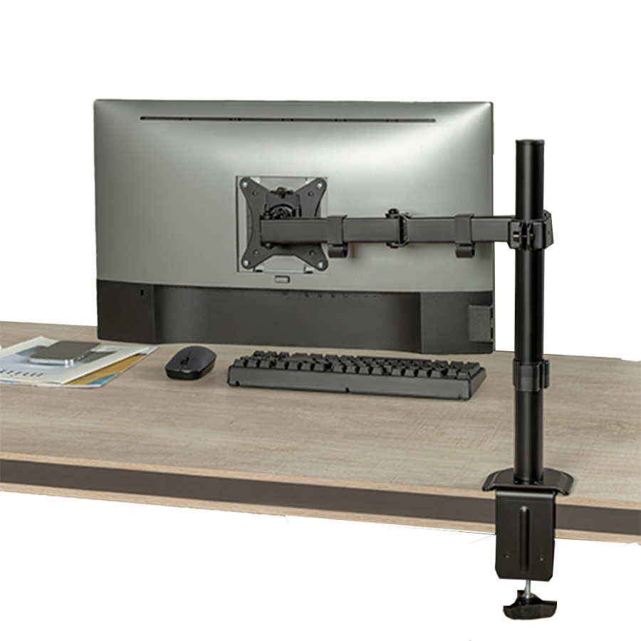Držač za monitor na stolnoj ruci dodatak je dizajniran za ergonomsku potporu i podešavanje monitora. Pričvršćuje se na rub ili površinu stola poSnagau baze ili stezaljke te omogućuje slobodno pomicanje monitora u različitim smjerovima: visina, nagib, rotacija i udaljenost.