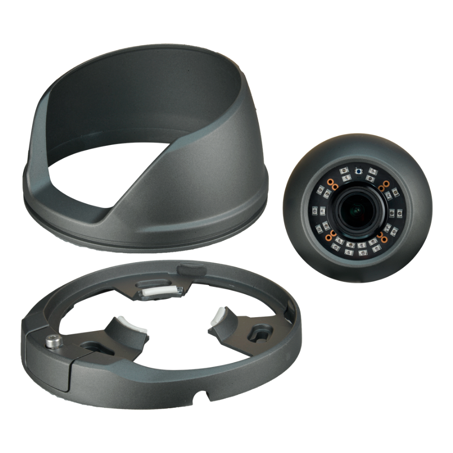 The housing is made of aluminum and is weatherproof according to protocol IP66, which makes it suitable for both indoor and outdoor. It has three axes (3AXIS) that allow easy and accurate adjustment of the viewing angle, with ceiling or wall installation. It incorporates a screw connecting the base with the camera structure, for easy installation.