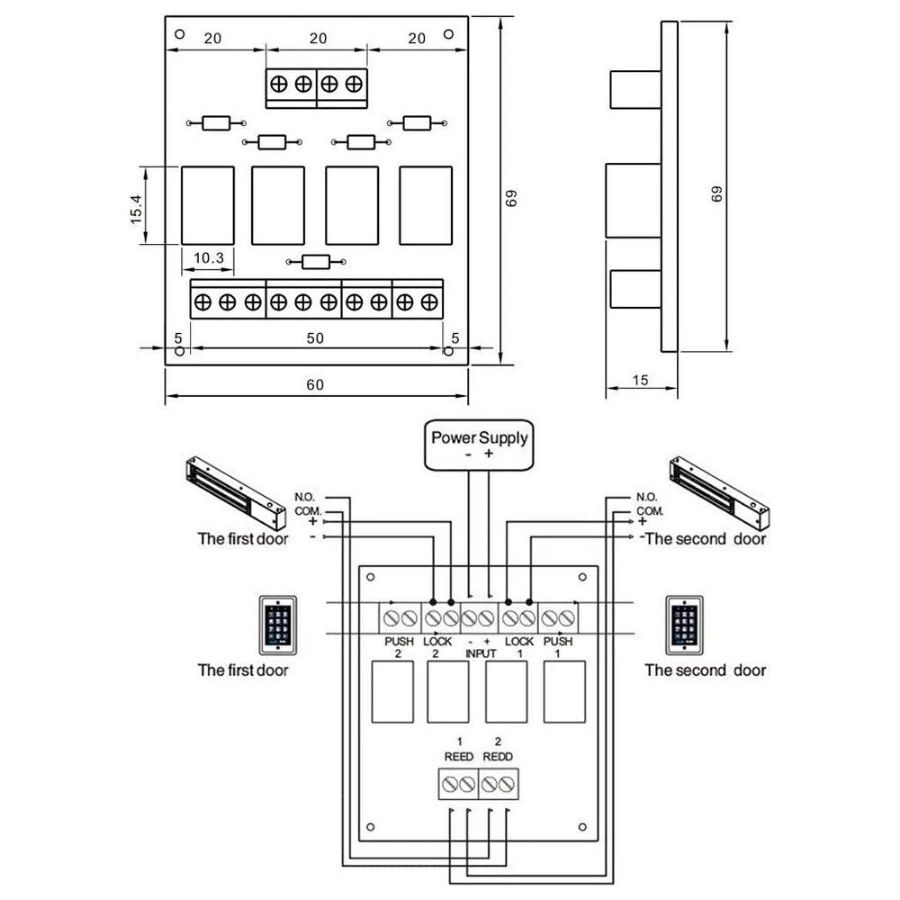 PCB-501, Relejni modul, Stvaranje dvaju, brave na vratima, Dvostruki izlaz, Mala veličina