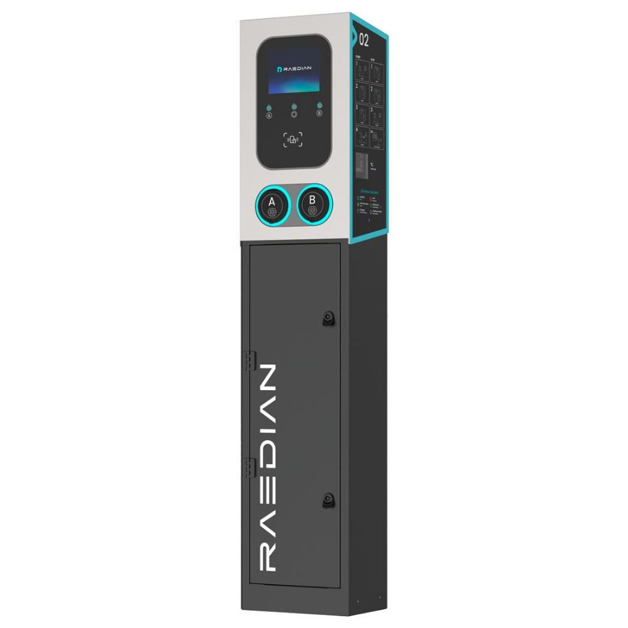 Ovaj RAEDIAN Gemini punjač s postoljem idealno je rješenje za javne prostore, poput trgovačkih centara, dvorana, ureda ili parkirališta.