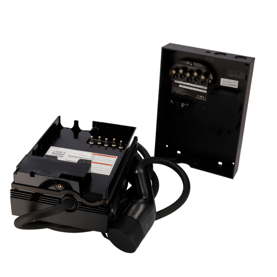 Raedian's NEO residential electric vehicle charger is the best solution for charging 100% electric and plug-in hybrid vehicles semi-fast in residential environments. It features a sleek design and small size, which, together with its three possible inputs for power and communication cables, makes installation quick and easy.