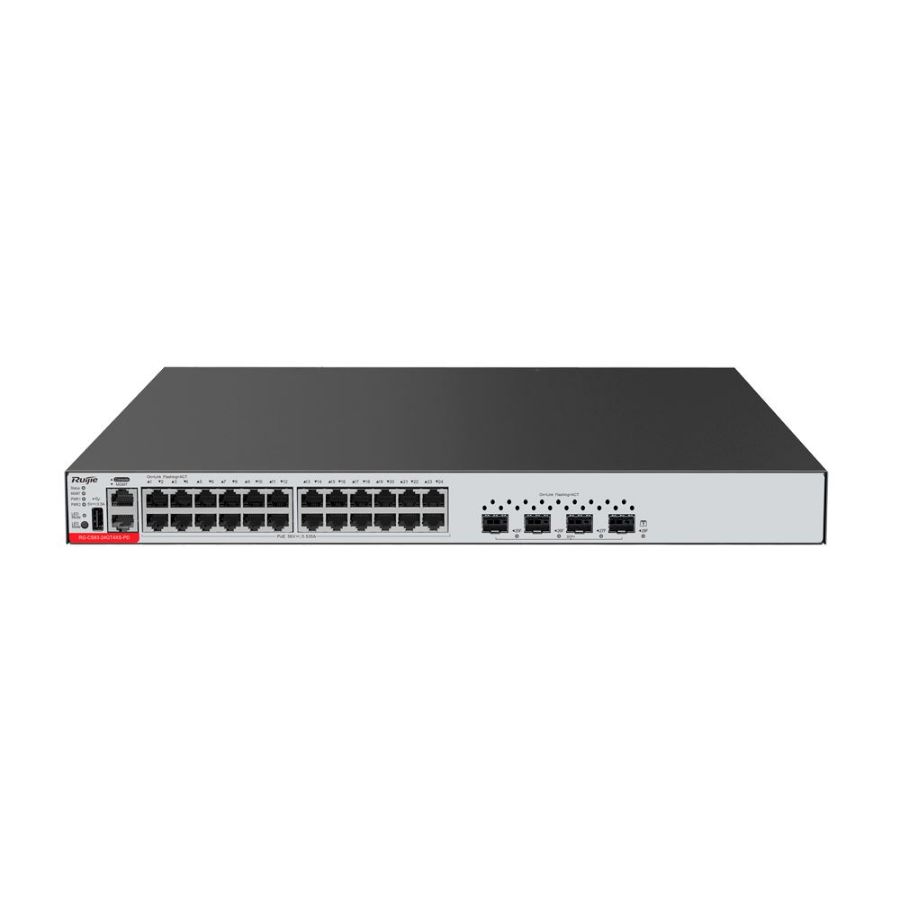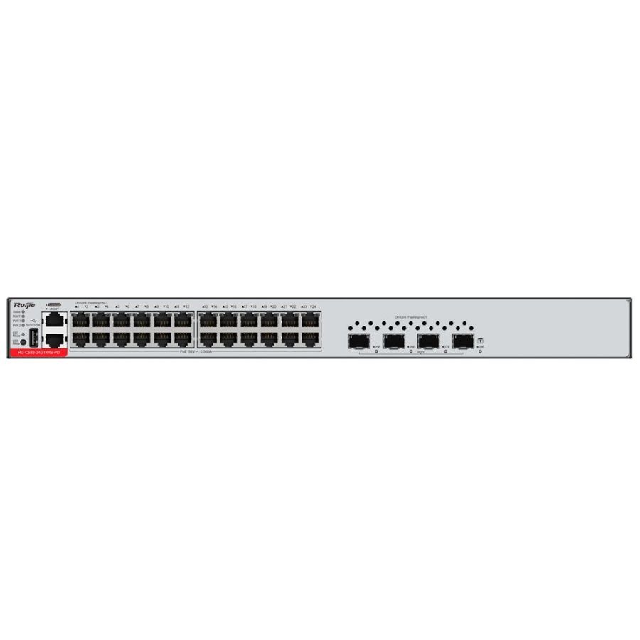 | Sučelje | 24 PoE priključaka RJ45 + 4 SFP+ priključka 1 MGMT priključak + 1 konzolni priključak + 1 USB priključak |
