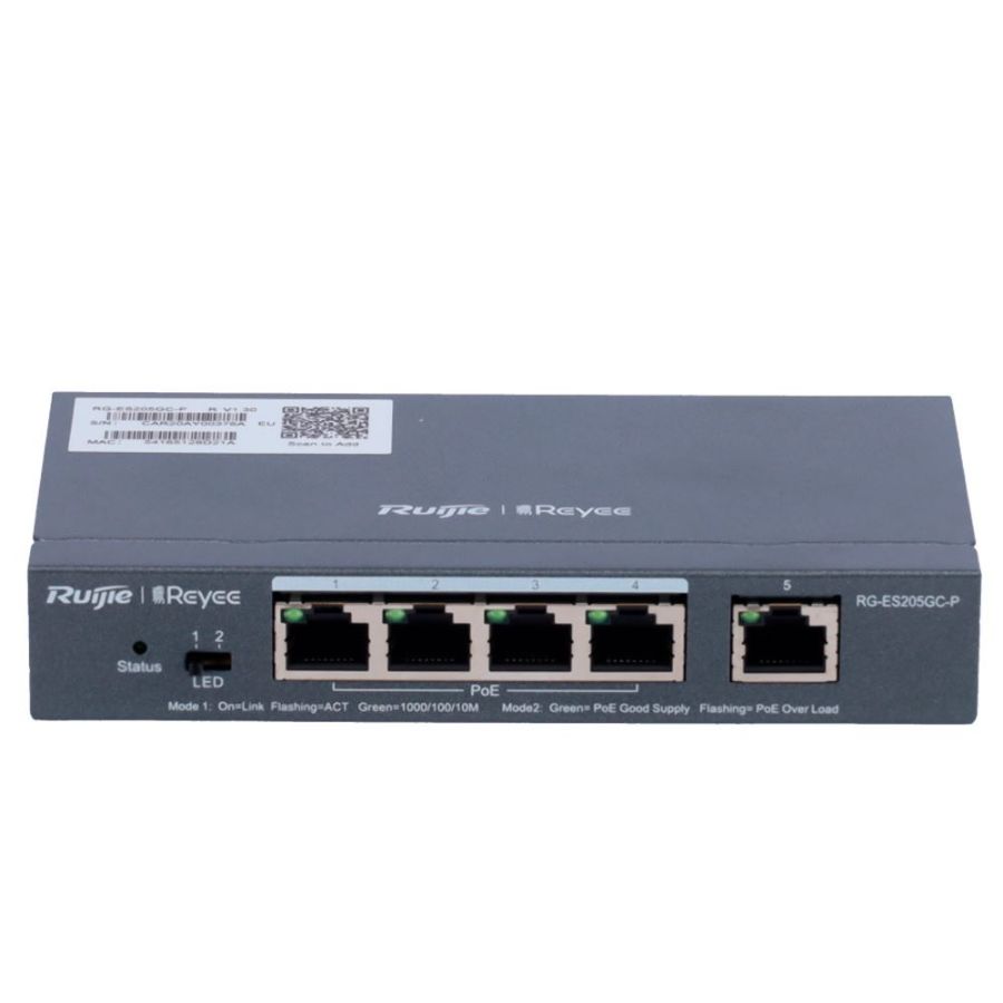 | Sučelje | 4 PoE+ priključka RJ45 10/100/1000 Mbps + 1 RJ45 10/100/1000 Mbps uplink |