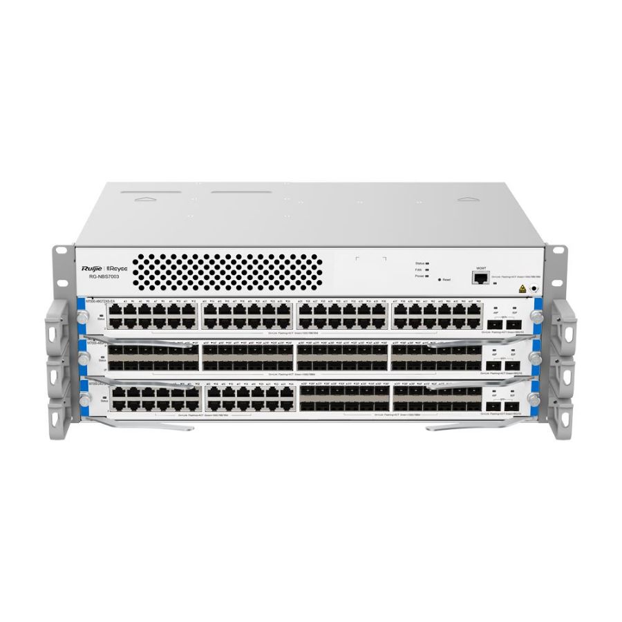 | Sučelja | Do 144 RJ45 priključka 10/100/1000 Mbps Do 144 SFP priključka 10/100/1000 Mbps Do 48 SFP+ 10-gigabitnih priključaka *Potrebna je kupnja jedne ili više kartica RG-M7000 i, ovisno o odabranim karticama, int |