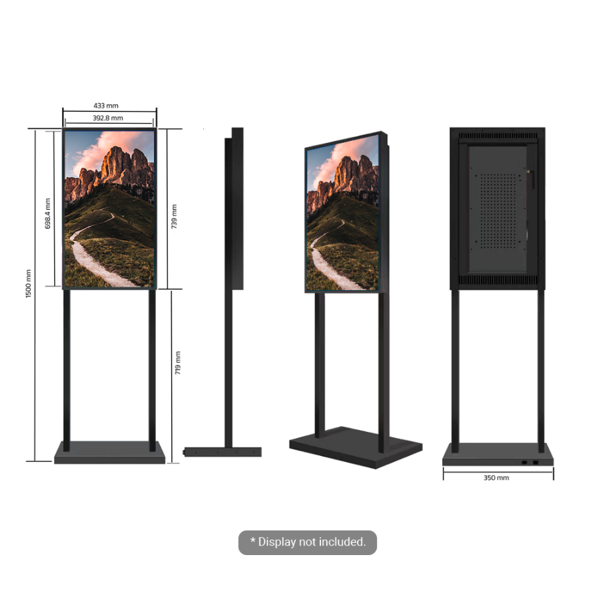 A floor stand is a structure that holds a monitor on the floor, with a stable base (stand) that provides support and stability. This type of bracket is ideal for locations where wall mounting of the monitor is not desired or not possible.