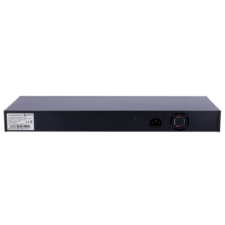 | Interfaces | 24 ports RJ45 PoE + 2 Uplink RJ45 + 2 Uplink SFP |
