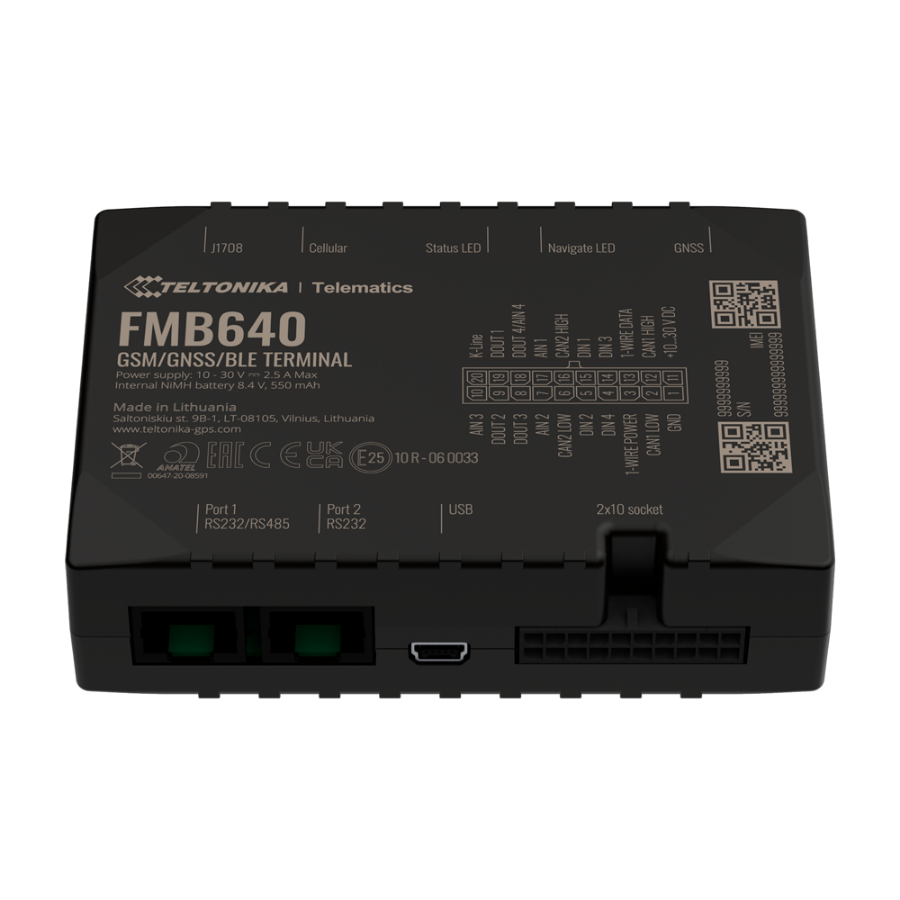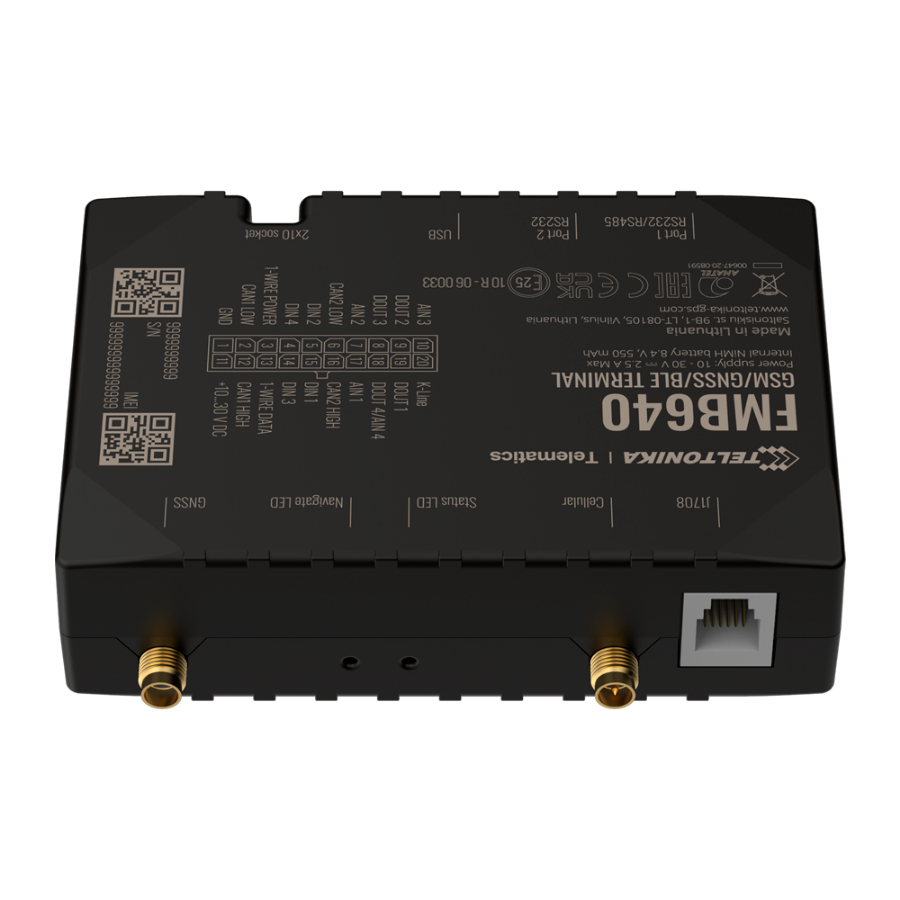 | Configuration and management | FOTA Web, Teltonika Configurator (USB) |