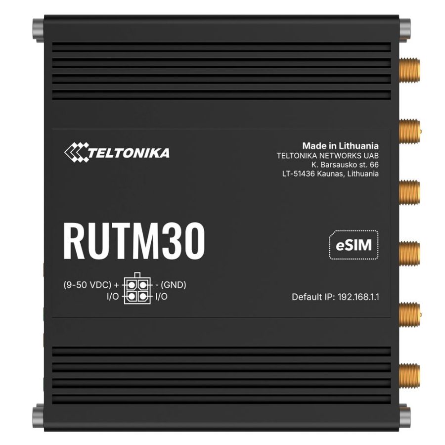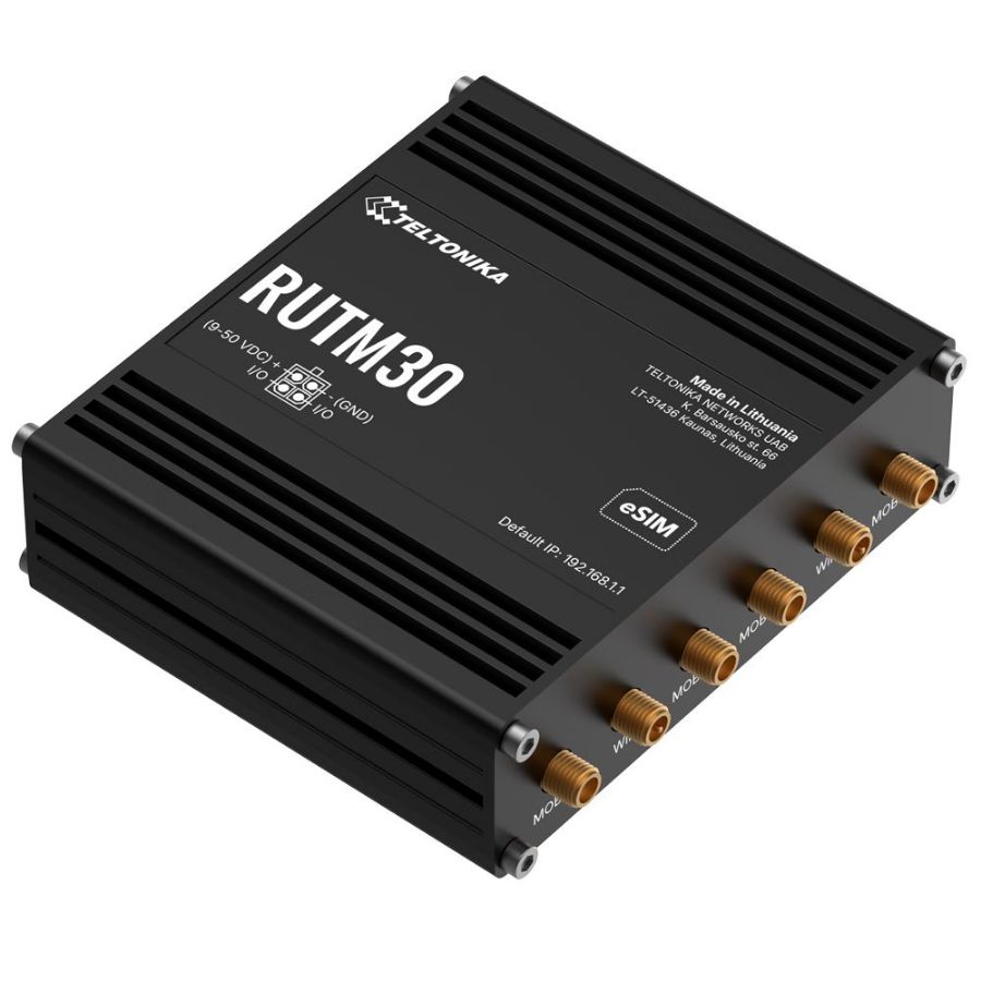 Teltonika RUTM30 je 5G robustan, siguran i višenamjenski industrijski ruter, savršen za primjene koje zahtijevaju naprednu brzinu, redundantnu povezivost, daljinsko upravljanje i otpornost u industrijskim okruženjima. Uključuje 5G Sub-6GHz povezivost (s podrškom za 4G/3G), dvije fizičke SIM kartice i eSIM s automatskim prebacivanjem te dvopojasni Wi-Fi 5 za visoki kapacitet. Njegova niska potrošnja energije, pasivna PoE kompatibilnost i širok raspon snage čine ga učinkovitim rješenjem za kritične IoT sustave, video nadzor ili automatizaciju.