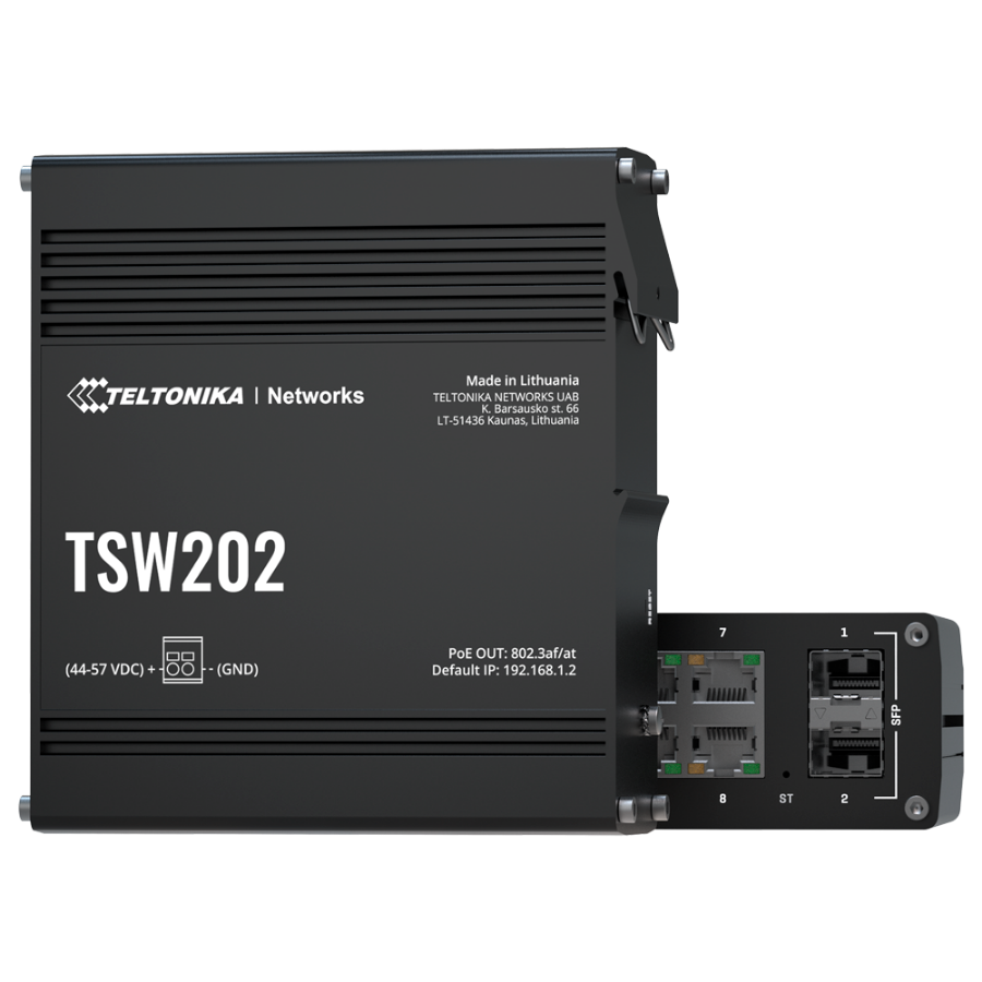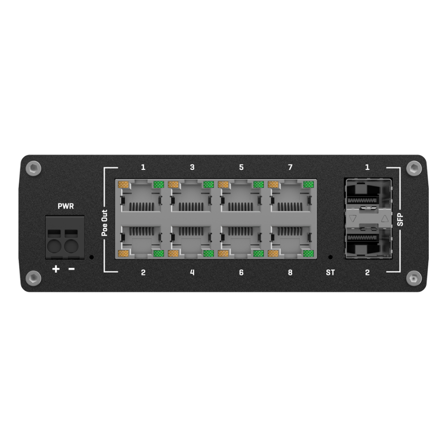 | Power | DC connector 2 Industrial pins 7~57VDC without powering PoE devices and 44~57VDC powering PoE devices (Power supply not included)Maximum consumption 8W / 248W with PoE |