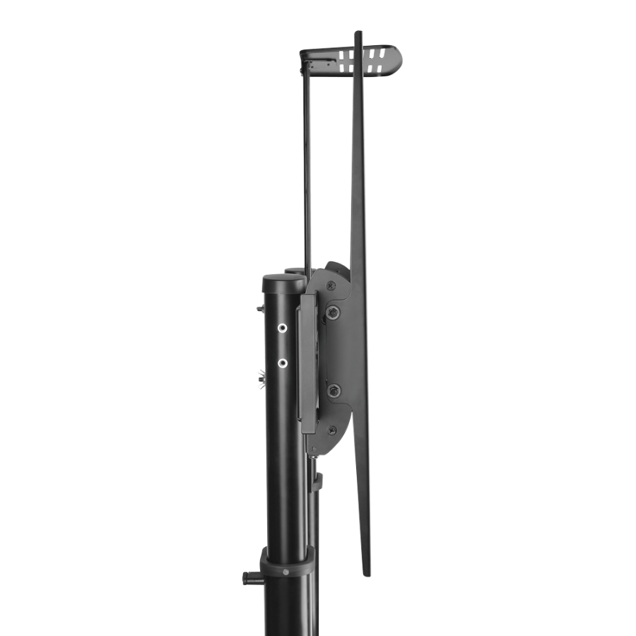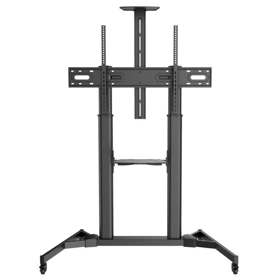 Stalak na kotačima za monitor je konstrukcija s kotačima dizajnirana za praktično i sigurno podupiranje i prijevoz monitora. Njihova glavna funkcija je olakšati pokretljivost monitora, omogućujući njegovo jednostavno premještanje s jednog mjesta na drugo. Ova vrsta stalka idealna je u okruženjima kao što su konferencijske dvorane, konferencije, učionice, sajmovi ili suradnički radni prostori, jer nudi fleksibilnost za prilagodbu položaja monitora prema potrebi. Osim toga, mnogi modeli uključuju podešavanje visine, nagiba i upravljanje kabelima, što poboljšava ergonomiju i organizaciju prostora.