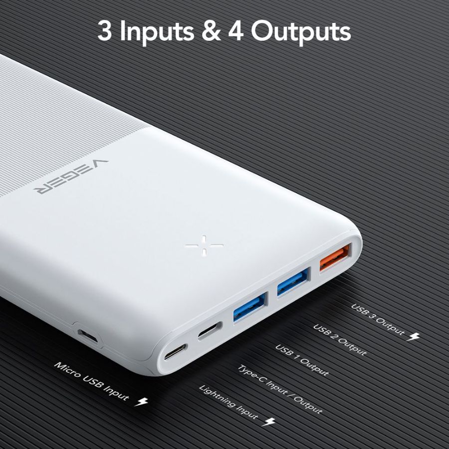 | Konektori | Ulazi 1x Micro USB 5V-2A (10W) / 9V-2A (18W) 1x Lightning priključak 5V-2A (10W) 1x USB-C priključak 5V-3A (15W) / 9V-2A (18W)Izlazi 1x USB-C priključak 5V-3A (15W) / 9V-2A (18W) / 12V-1.5A (18W)2x USB-A priključak 5V-2.4A ( |