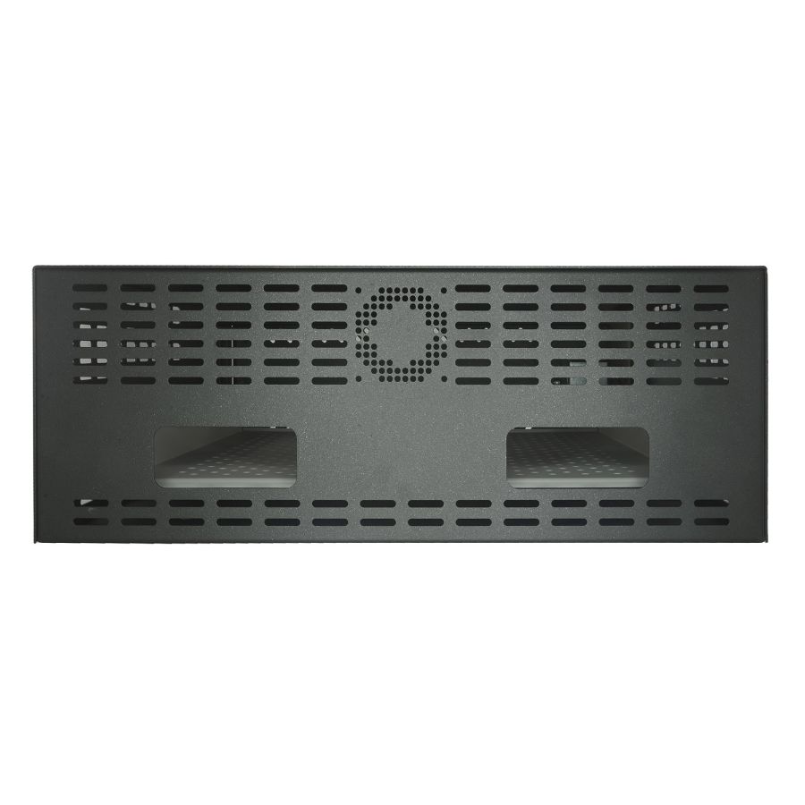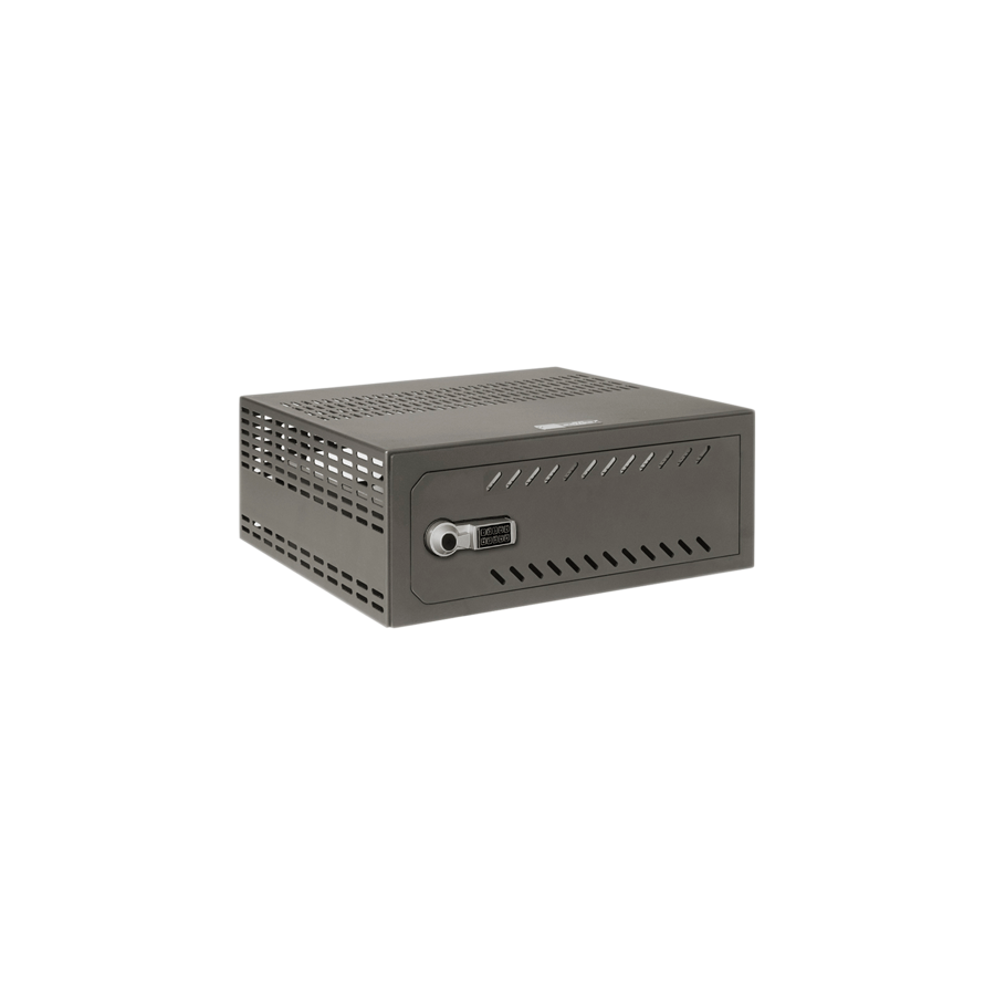The safe VR-120E is specially designed to protect video recorders whose size does not exceed 1,5/2U rack. It consists of a steel box with 2 mm thick door and steel frame of 4 mm, equipped with vents located throughout the box, rear windows for wiring and various drills to anchor the safe. It is finished in epoxy-polyester polymerized paint at 180 oC very resistant.