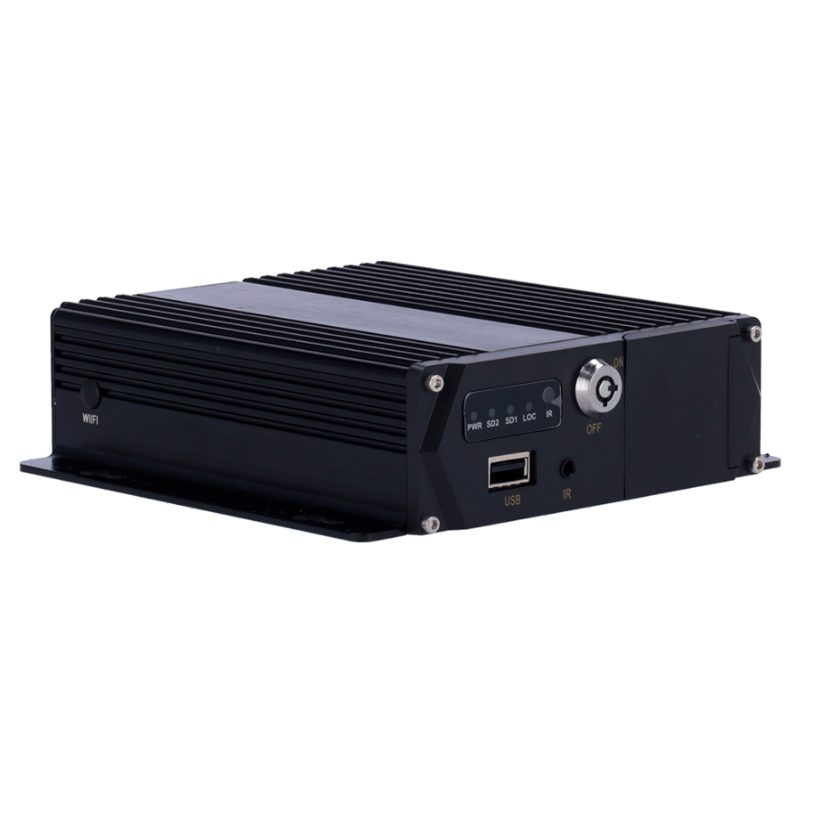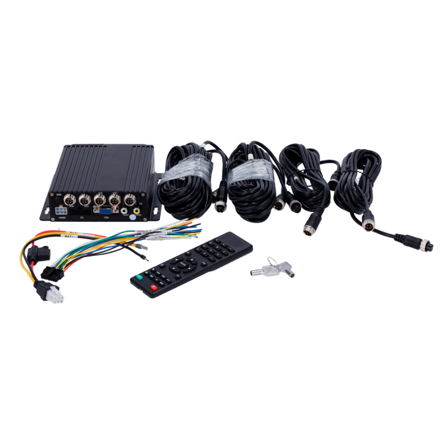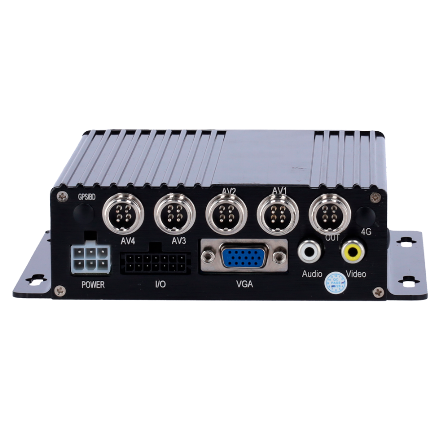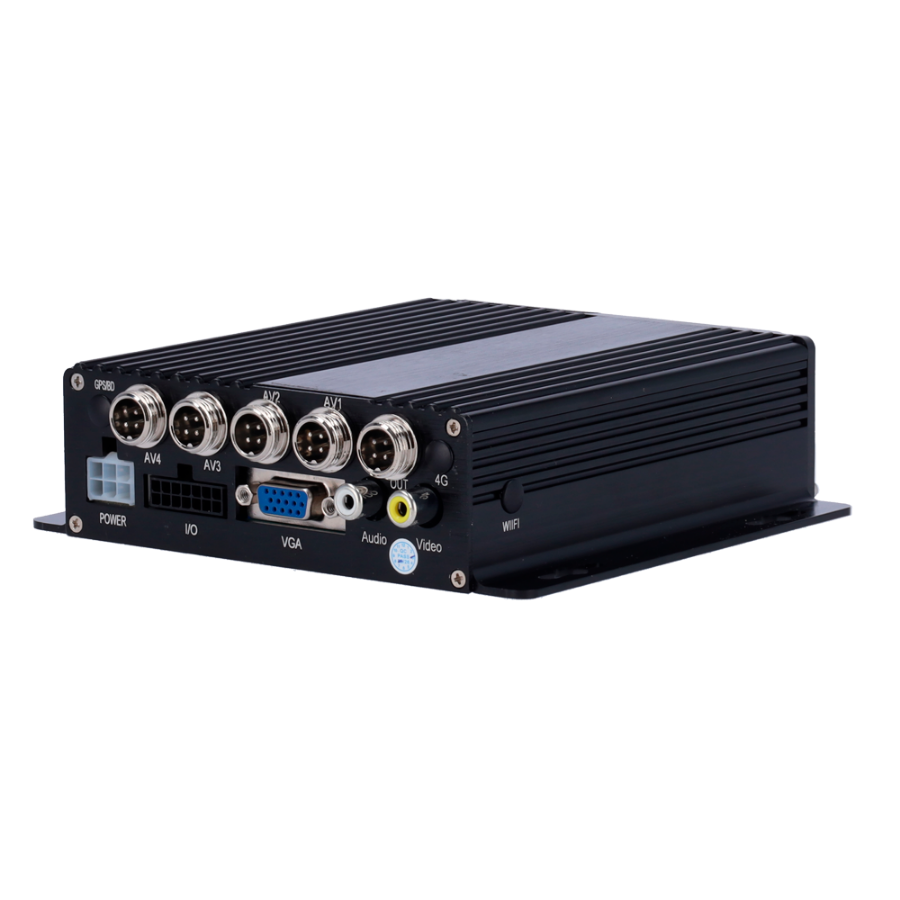 Basic 4 AHD channel recorder 1080P with aviation connectors M12 4 pins for real-time display via monitor, video playback and recording download via USB.