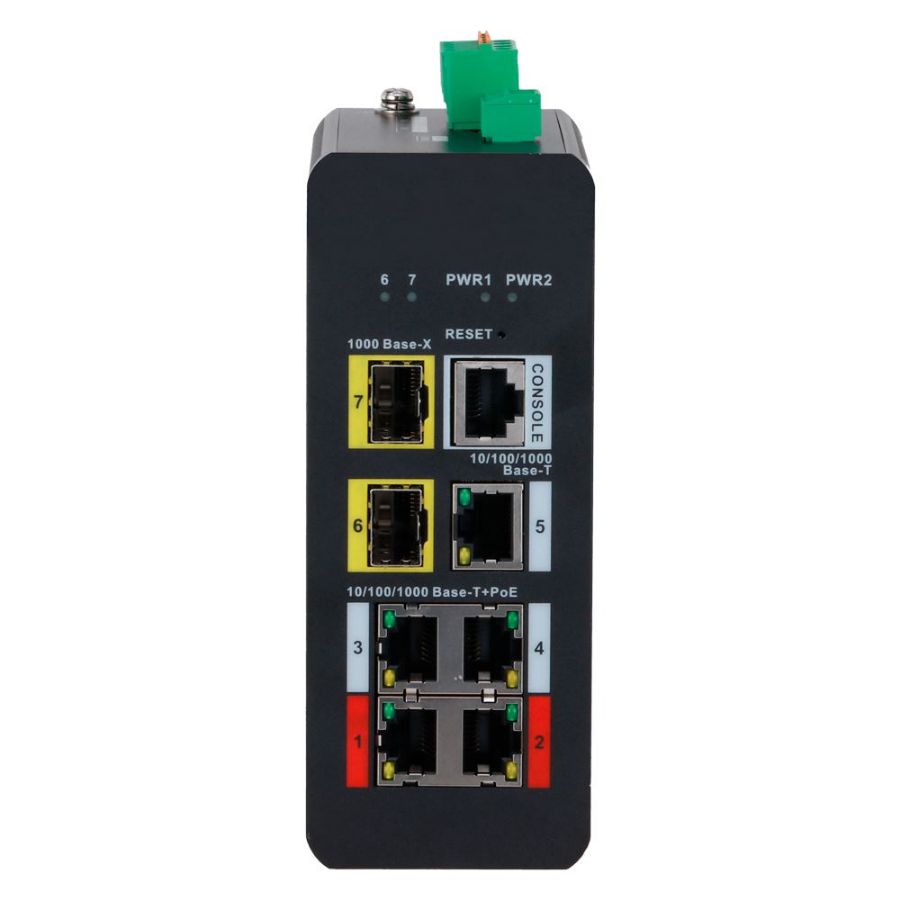 | Sučelje | 4 PoE priključka RJ45 + 1 Uplink priključak RJ45 + 2 optička SFP priključka + 1 konzolni priključak [%VAR%] Konzolni priključak |