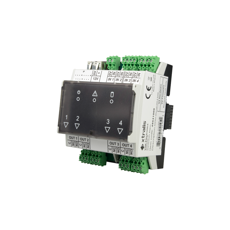 The module has 4 voltage-free contact inputs (default = NO).